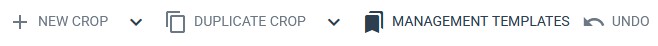 Selecting the button dropdown next to new crop will display access to some more buttons that can be used to add crop data to a plan: