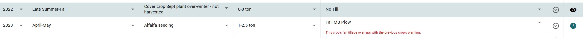This field has a fall-tilled crop following a fall-planted cover crop. The fall tillage is impossible (will not be an option in the dropdown for tillages).