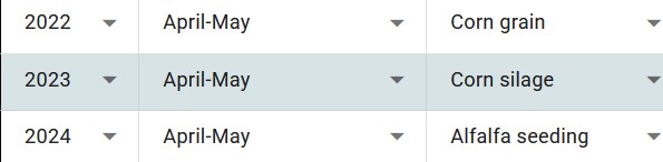 2023 April-May Corn silage has been deleted from the sequence. The Alfalfa seeding's planting year has been automatically adjusted.