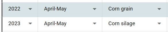 The 2023 Corn silage has been moved to the year 2024 to allow for a new crop to be planted in 2023